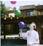 Here's Jonwa (the roommate) with a hell of a lot of balloons. It was his birthday. Happy birthday, man!
