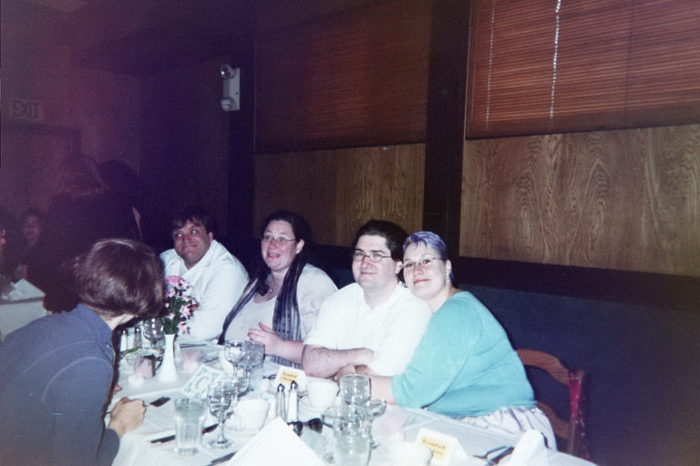 | A shot of the adjacent table, featuring April, Kathy, Rita, Stevie, Charissa, and Curtis.