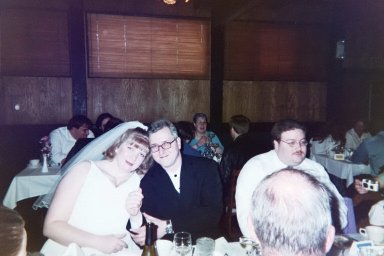 Another shot of Valerie and Sabrina, with our head table in the background. That's Sam and Ana on the end, there.