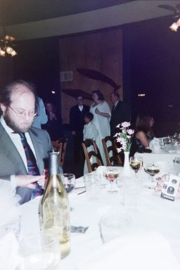 | The father of the groom and the mother of the best man have a little conference.
